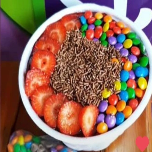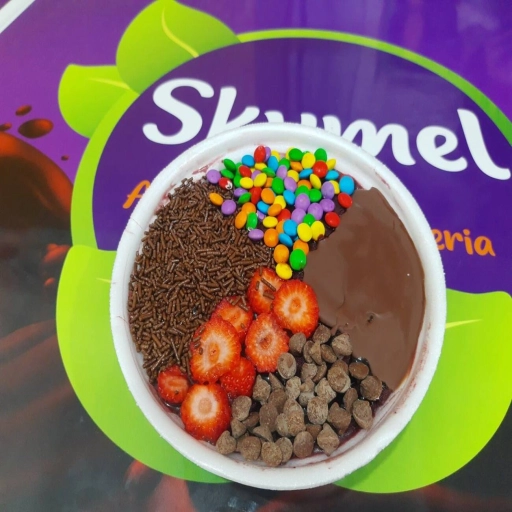 Açaí 500ml, escolha 2 coberturas, 4 complementos e 2 frutas.